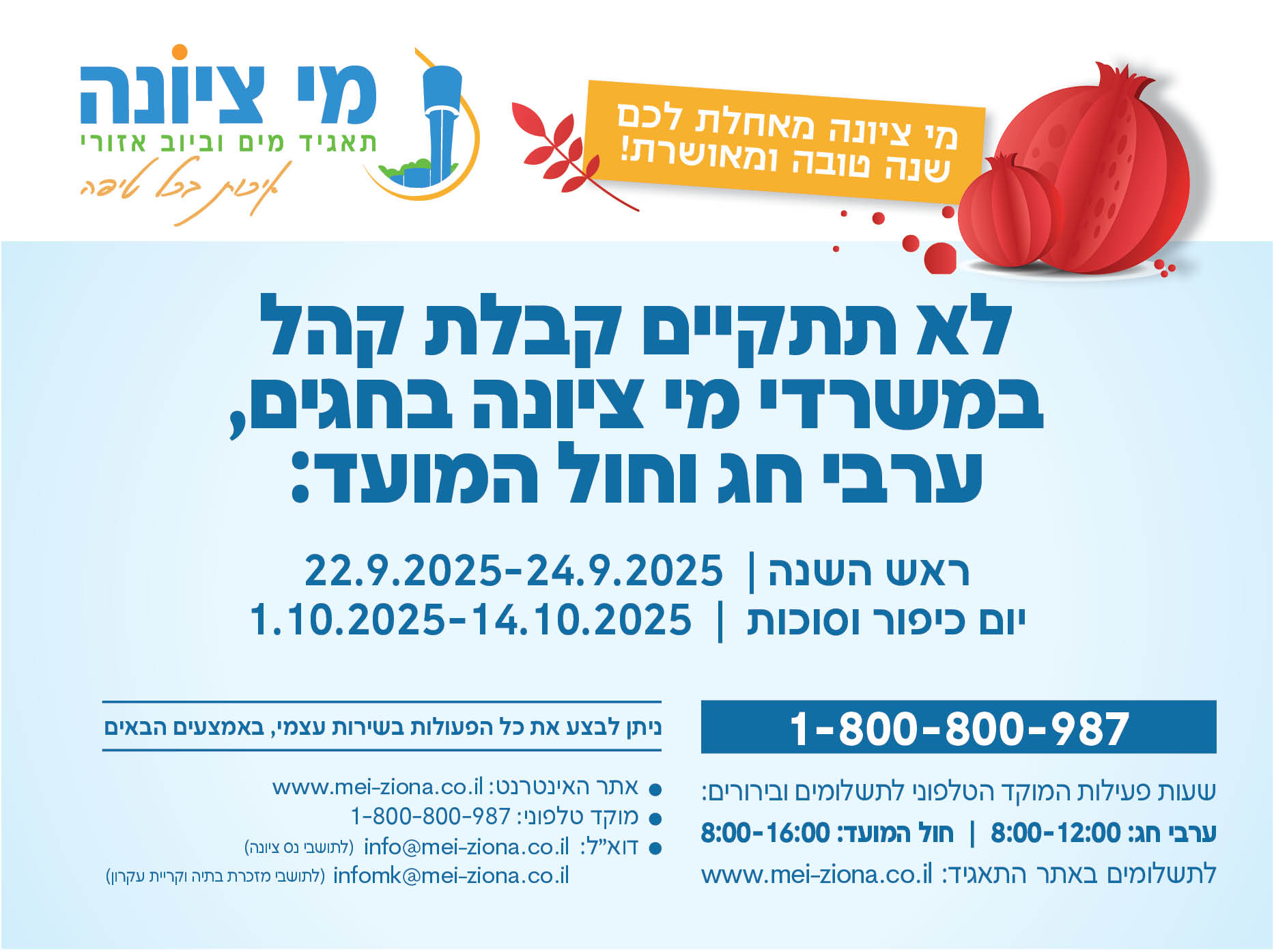 שינוים בשעות קבלת קהל במזכרת בתיה וקריית עקרון